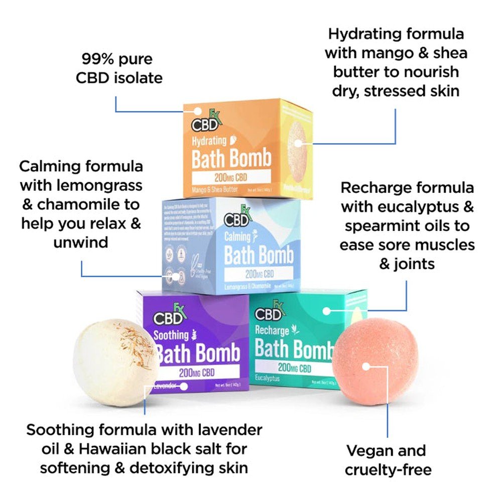 CBDfx CBD Bath Bombs are crafted for those who want their self-care routine to do more. Each bomb contains 200mg of pure CBD isolate — not a trace of THC — plus carefully chosen herbs and essential oils tailored to each scent’s wellness purpose.